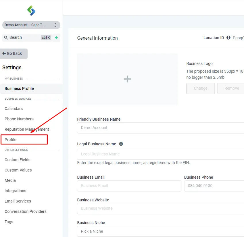Under the "Settings" section, find the "Profile" option in the left menu. Please note that the appearance of the menu may vary depending on your package with us.